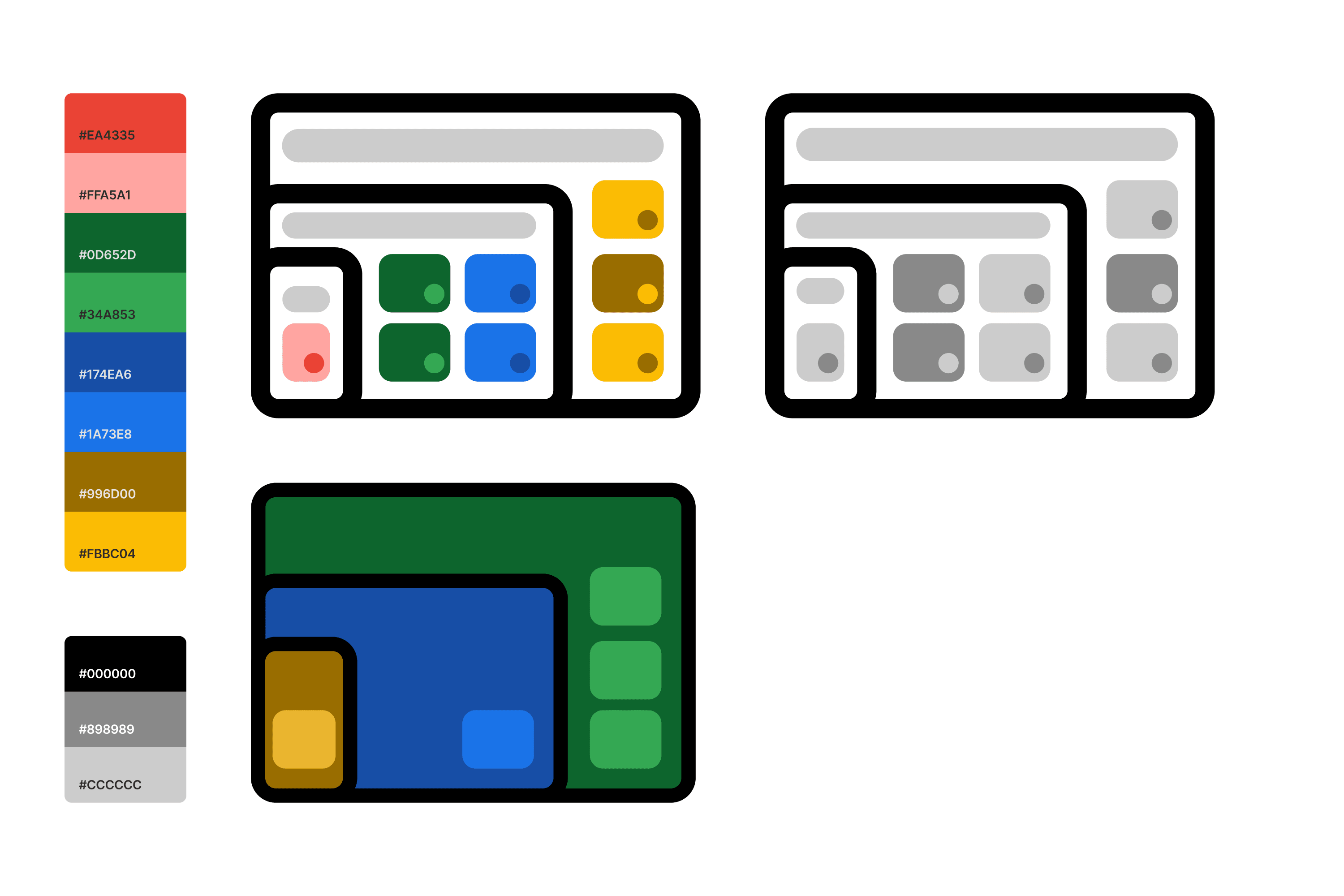 Early sketeches with broad color palette and complex shapes