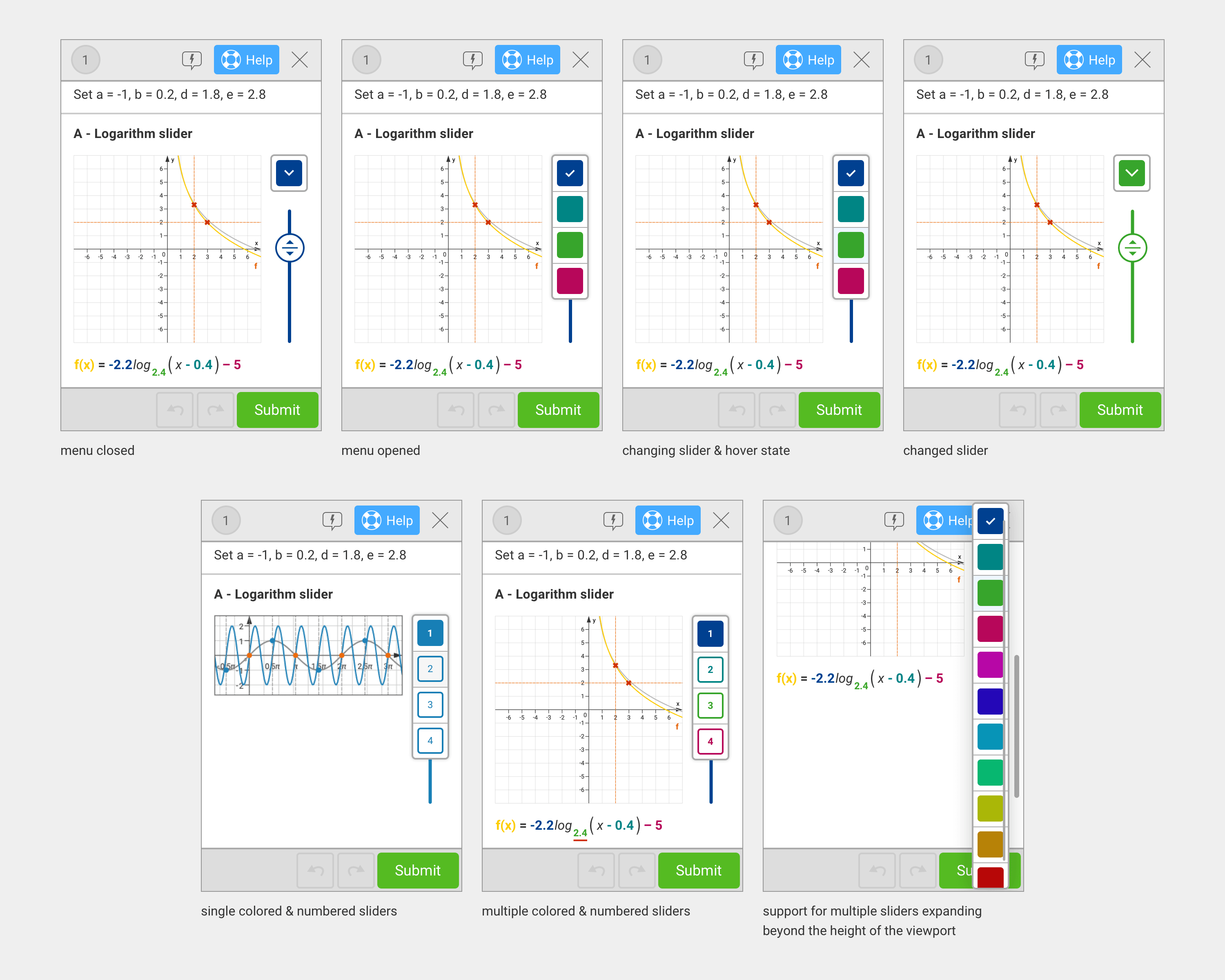 Making changes to the menu toggle and the compact slider system for the different types of exercises, uses, and requirements.
