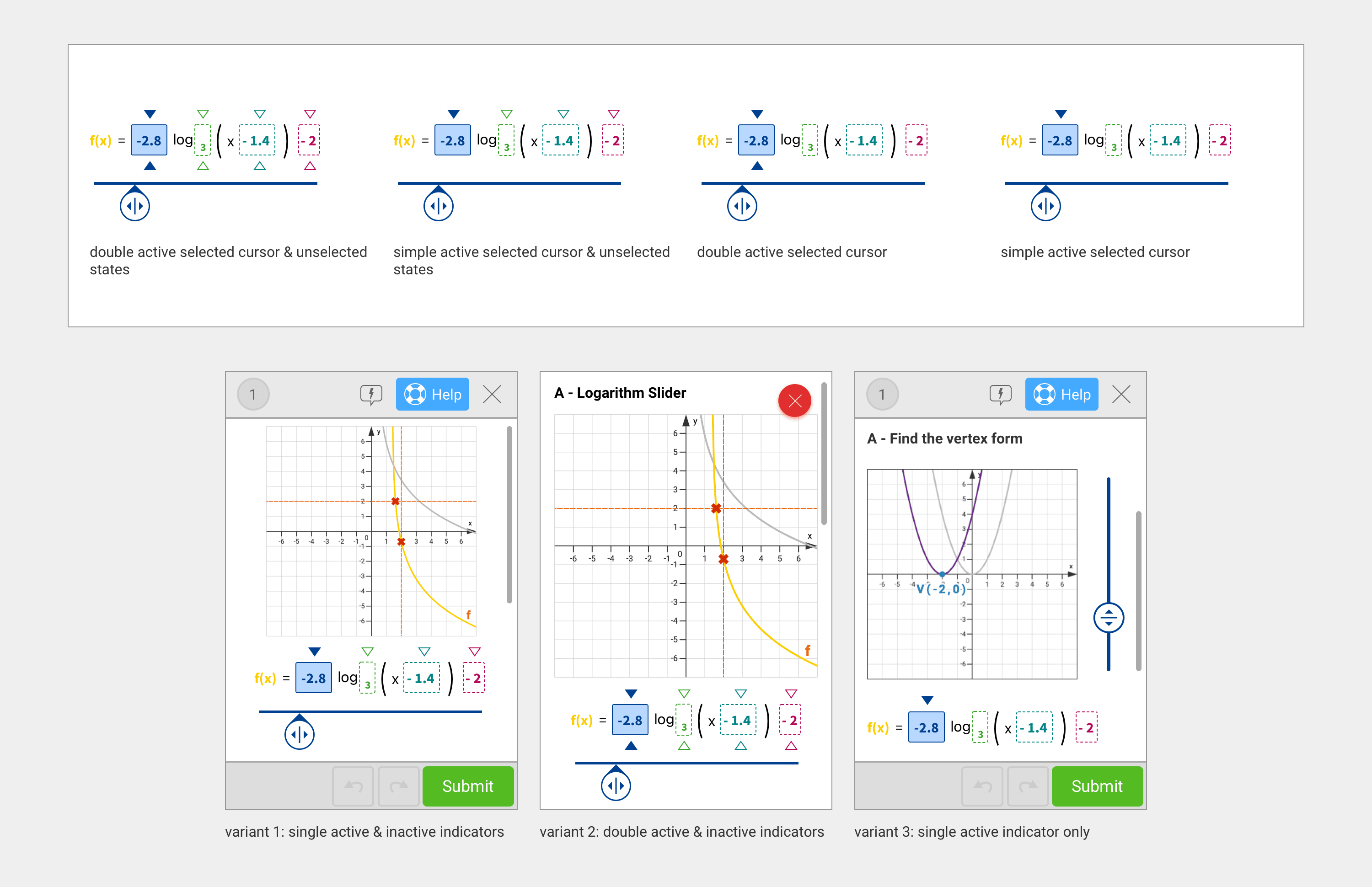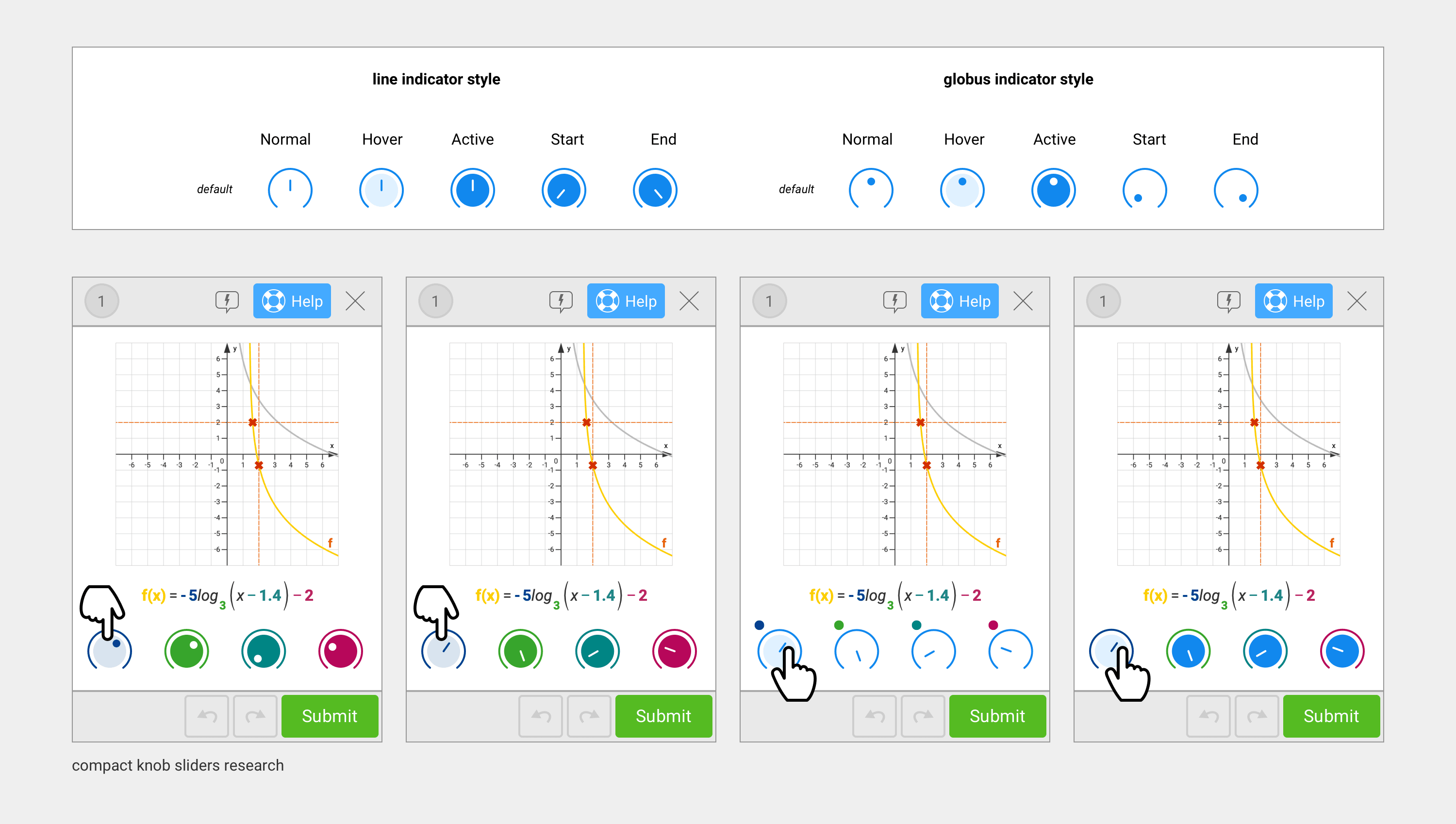 UI research on a compact slider system with knob-style heads.