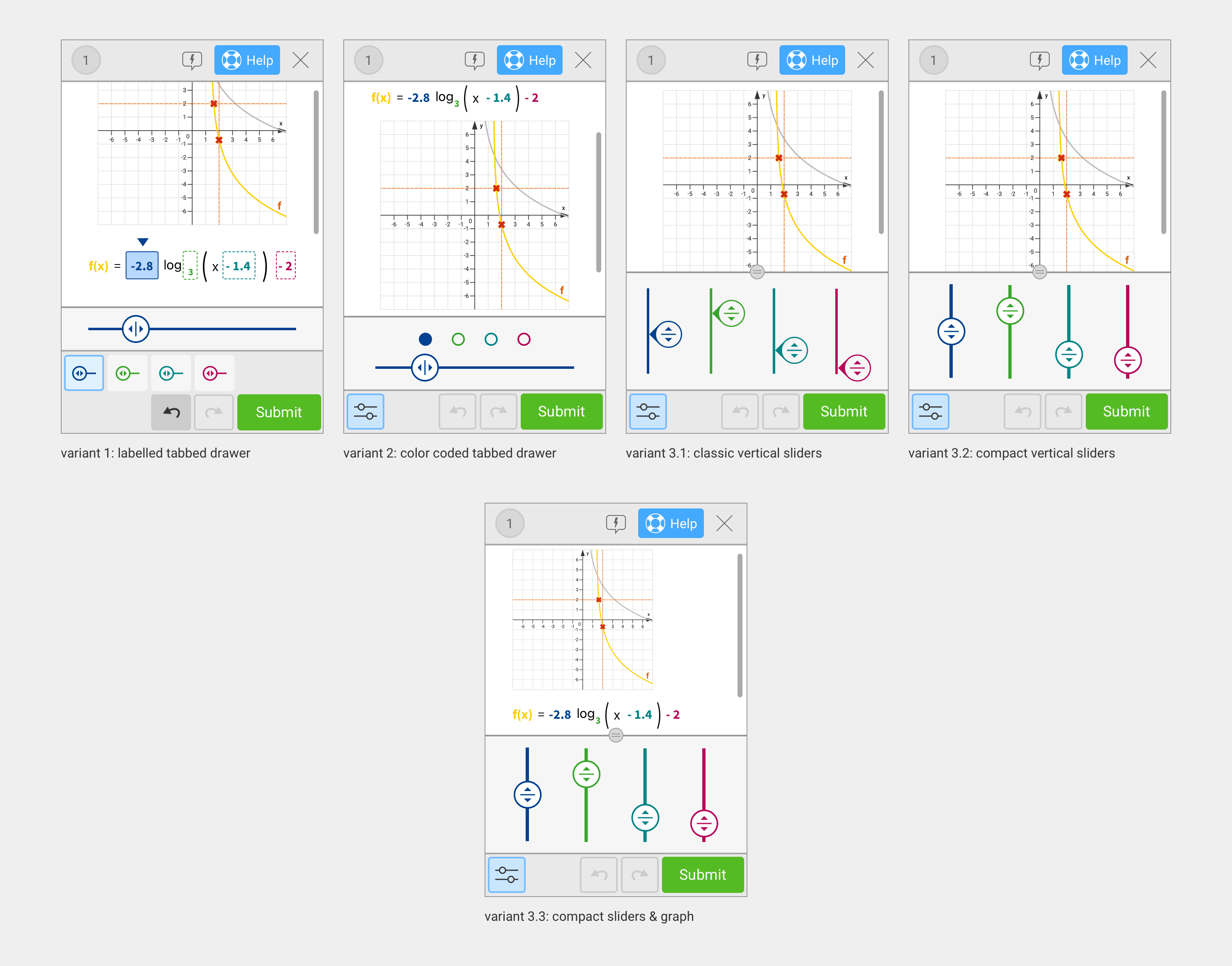With the requirements in place, I moved into the design phase. To address the challenge of fitting the UI on small screens, I developed a gizmo featuring a dropdown that controlled one or multiple sliders, along with a layout capable of displaying both elements simultaneously. I then iterated on this concept through multiple feedback loops with colleagues and prototype testing with students. This process allowed me to refine the design and eliminate variants that did not fully meet all requirements.