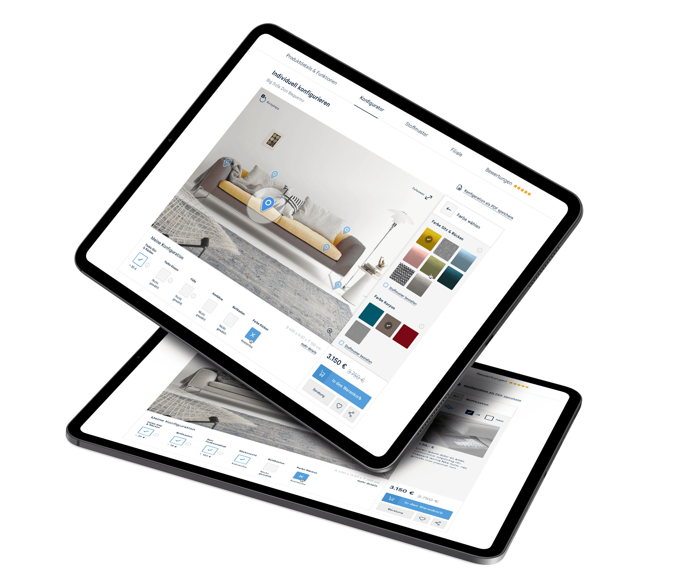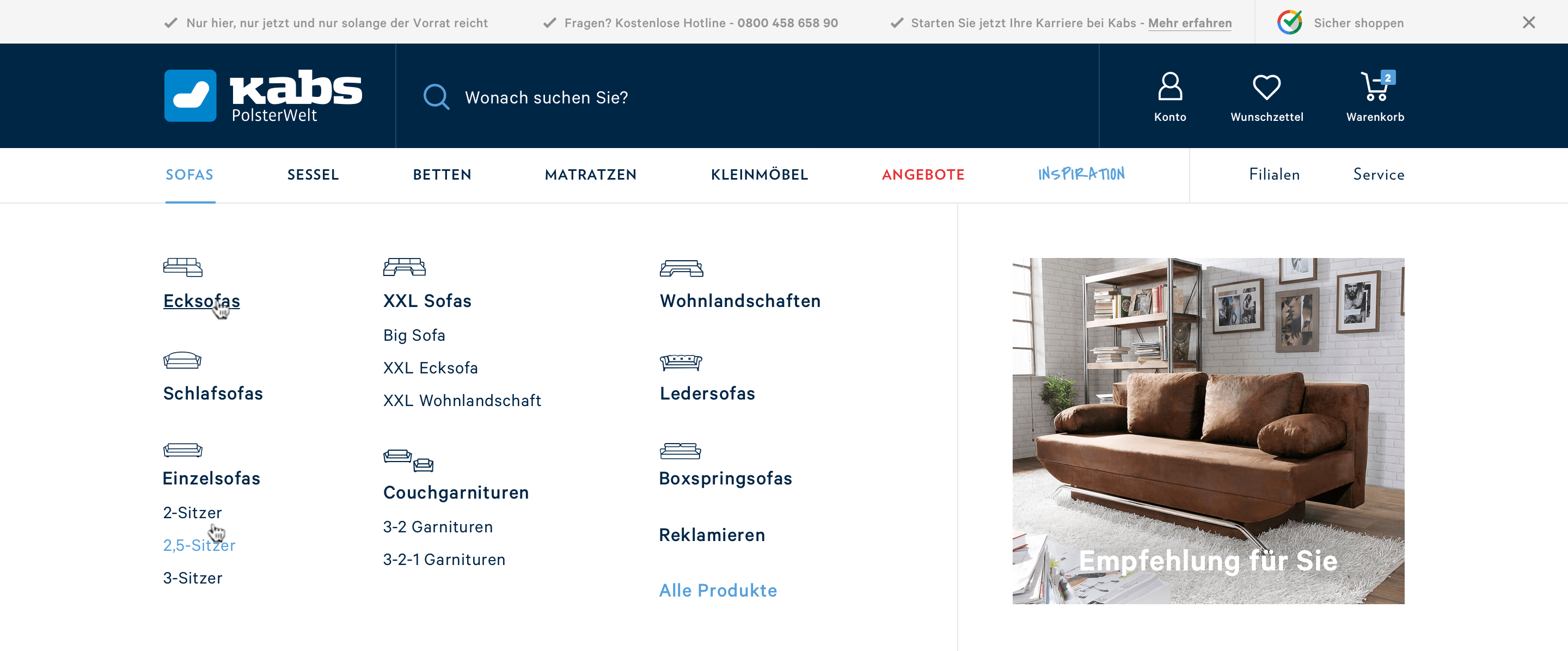 We built an e-commerce platform from the ground up for a leading German supplier of upholstered furniture and home accessories. The core task was helping customers configure sofas, find the right style, add complementary accessories, and complete a highly specific checkout flow online without competing with Kabs Polsterwelt’s established ecosystem of large retail stores.