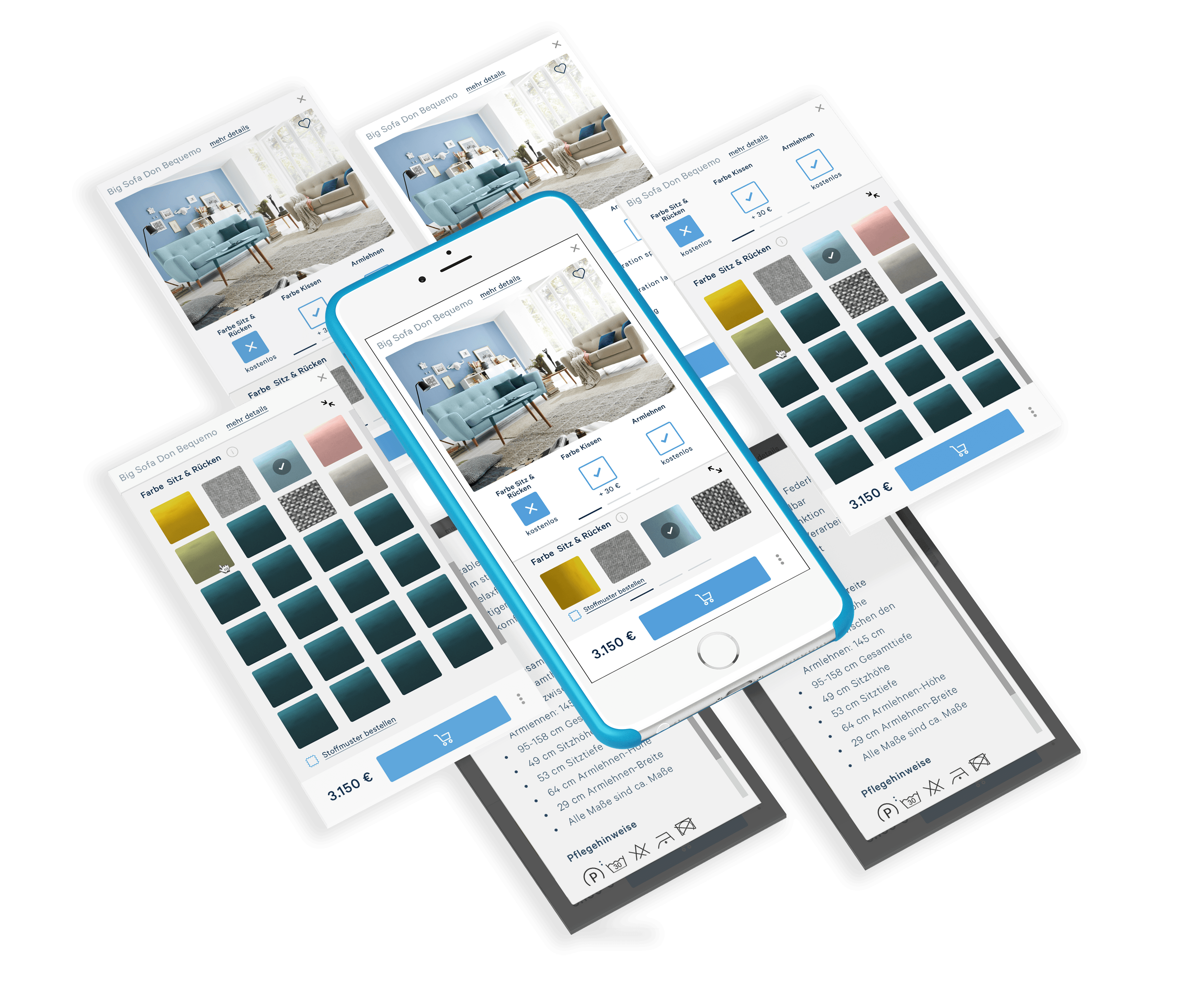 - Designed the sofa configuration flow to reduce complexity and hesitation